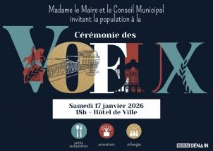 La Ville vous donne rendez-vous le samedi 17 janvier à 18h à l'hôtel de ville pour un temps d'échange, de partage et de proximité. La cérémonie des vœux se déroulera dans la salle des mariages. Ouverture des portes à partir de 17h30.