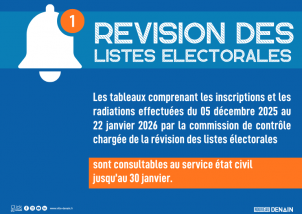 Les tableaux comprenant les inscriptions et les radiations effectuées du 5 décembre 2025 au 22 janvier 2026 par la commission de contrôle chargée de la révision des listes électorales sont consultables au service État civil.