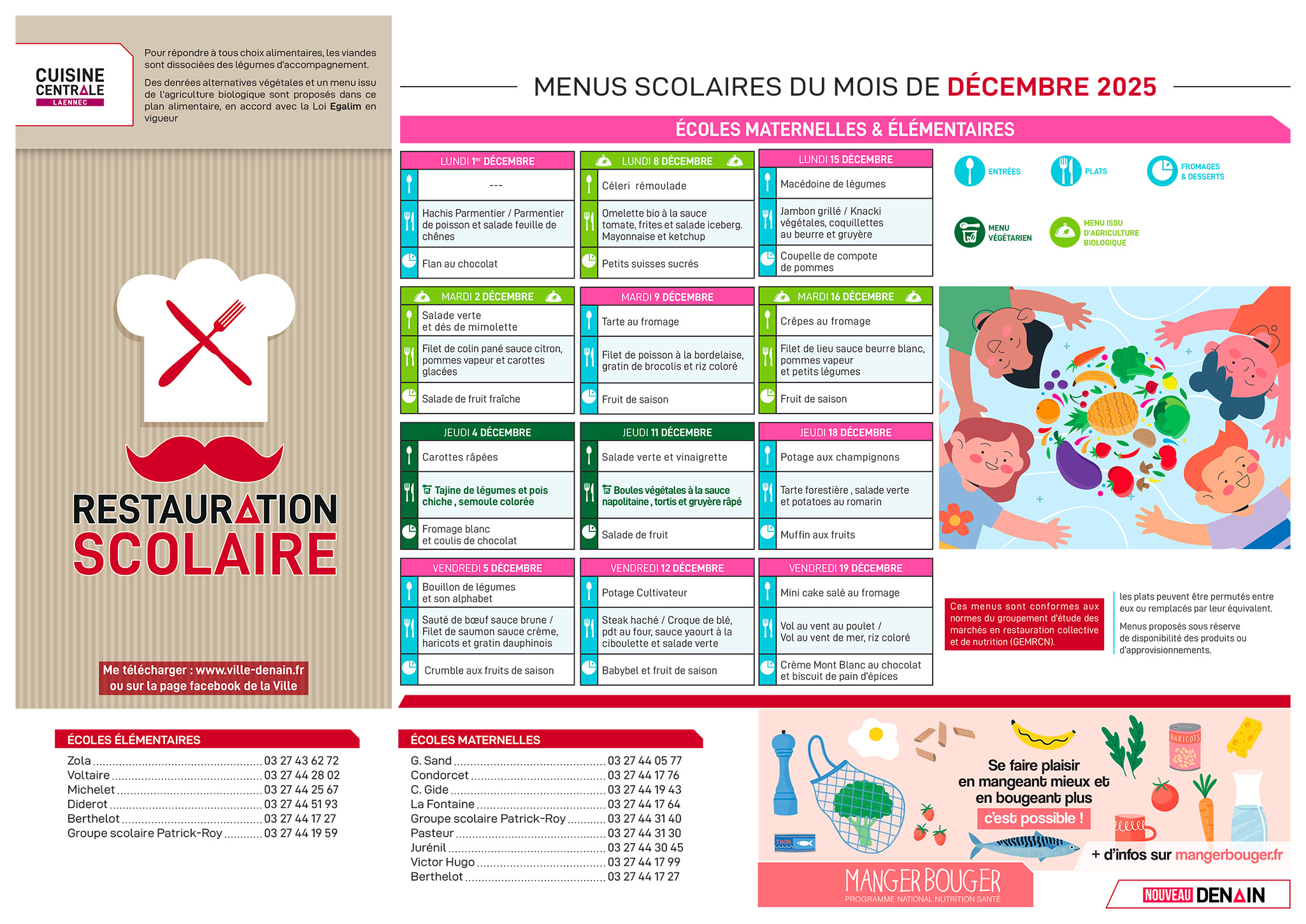 MENUS DU LUNDI 1 AU VENDREDI 19 DÉCEMBRE 2025