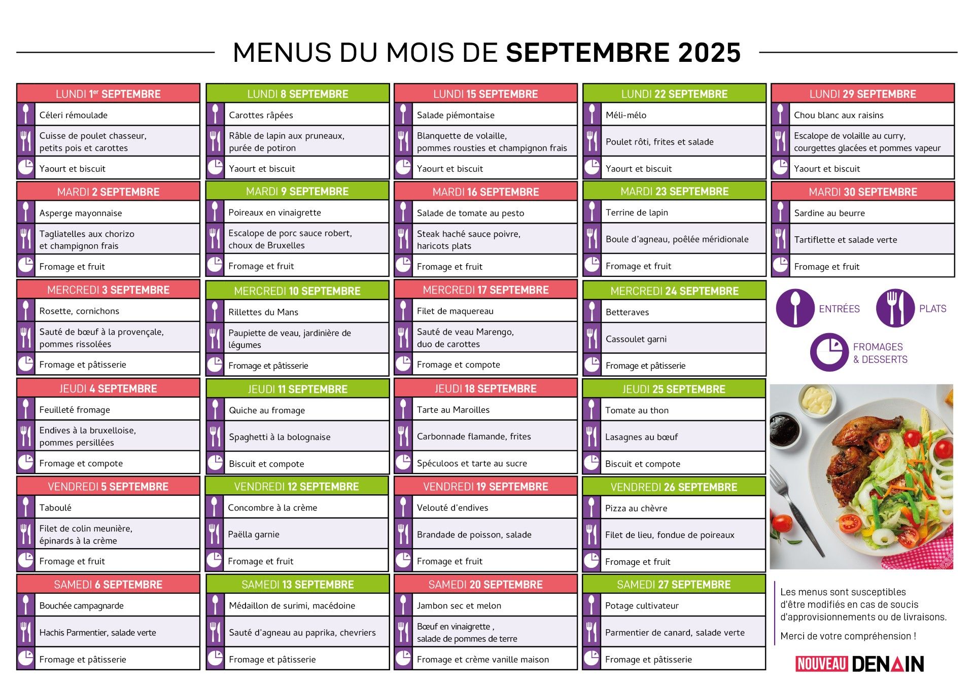 Le tableau complet des menus proposés durant le mois d'août 2025 est téléchargeable ci-dessous